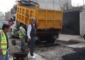 Pepe Chedraui supervisa trabajos de bacheo en San Pablo Xochimehuacan