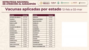 Con la Estrategia Nacional de atención al sarampión, se han aplicado más de 8.4 millones de dosis, con un promedio cercano a 3.3 millones por semana
