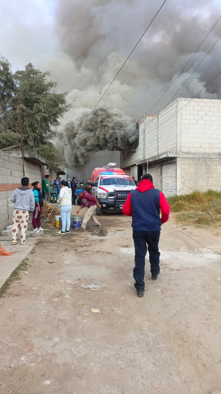 Se registra incendio en fábrica de salas en la colonia San Miguel de Amozoc