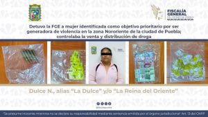 Detuvo la FGE a mujer identificada como objetivo prioritario por ser generadora de violencia en la zona Nororiente de la ciudad de Puebla; controlaba la venta y distribución de droga