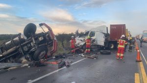Un camión Torton con plátanos chocó contra un tráiler al invadir el carril contrario, matando al conductor del tráiler; cuerpos de emergencia y Rescate Urbano intervinieron.
