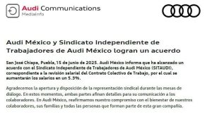 San José Chiapa, Pue., 12 de octubre de 2025.– La planta de Audi México anunció un paro técnico programado del 13 al 17 de octubre, debido a ajustes en su línea de producción. La medida impactará principalmente al área de ensamble y se aplicará conforme a lo estipulado en el contrato colectivo de trabajo. A […]