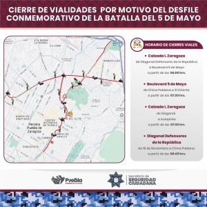 Implementará la SSC cierres viales por la realización del Desfile Conmemorativo de la Batalla del 5 de Mayo