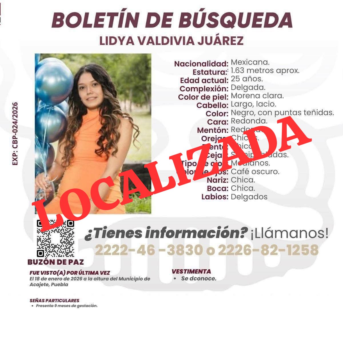 Luego de cuatro días de incertidumbre, movilización y búsqueda, la tarde de este jueves 22 de enero fue localizada Lydia Valdivia, la joven de 25 años de edad, supuestamente embarazada con nueve meses de gestación, que había sido reportada desaparecida en el municipio de Acajete, confirmó la Fiscalía General del Estado (FGE), a través de […]