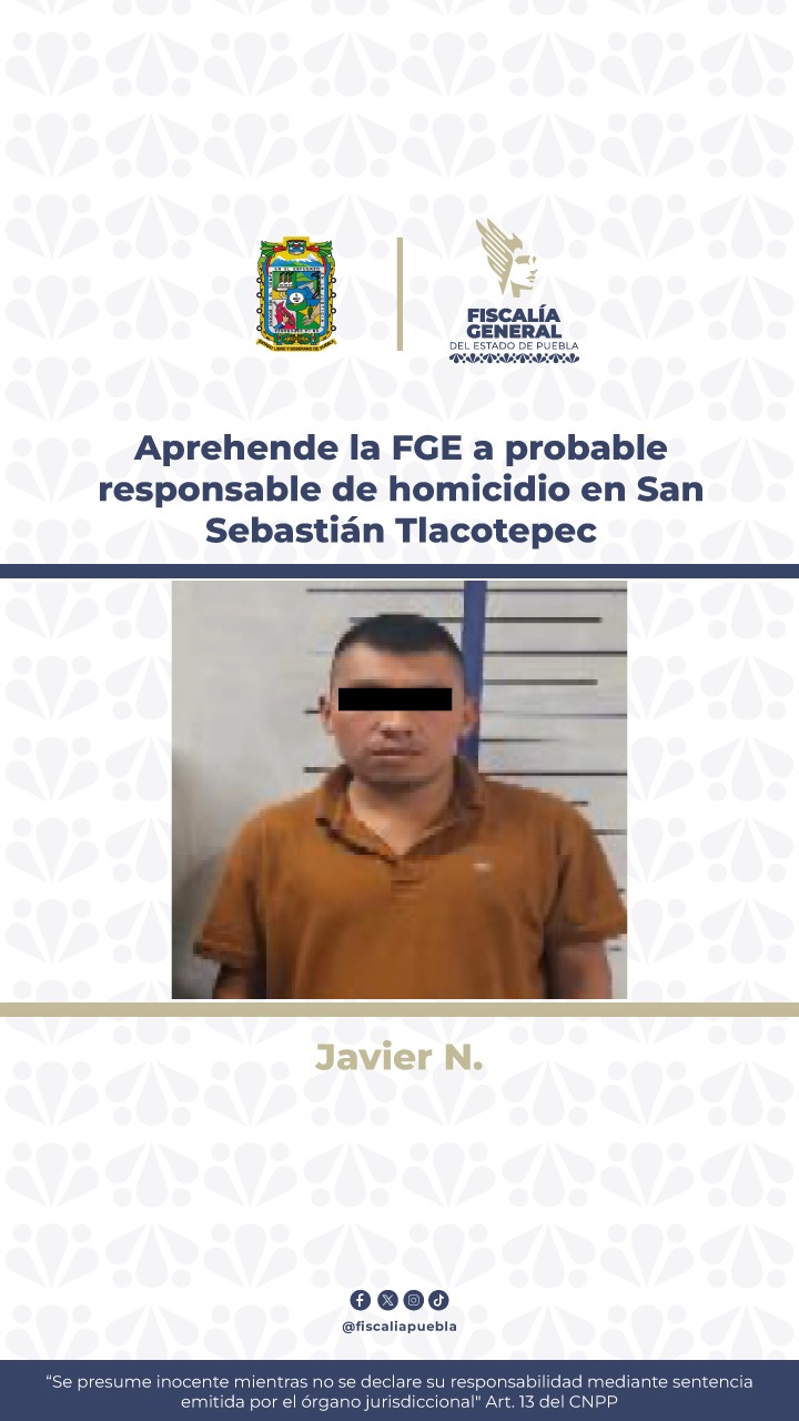 Aprehende la FGE a probable responsable de homicidio en San Sebastián Tlacotepec