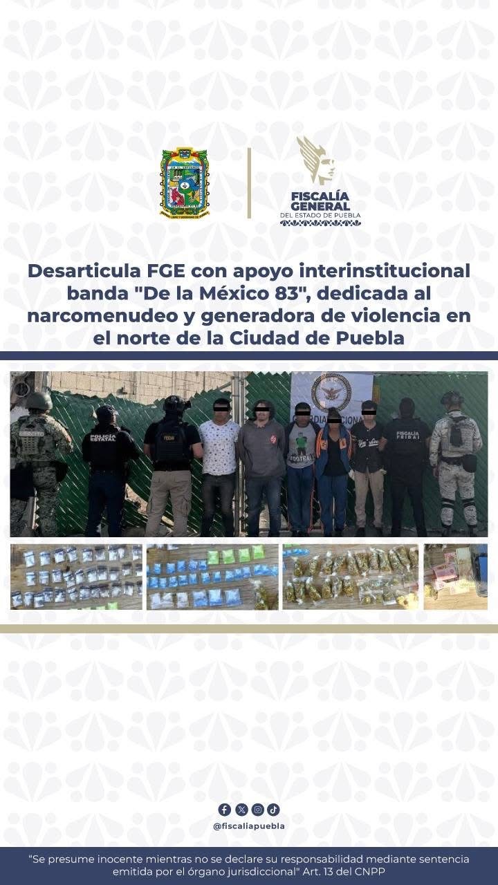 Desarticula FGE con apoyo interinstitucional banda “De la México 83”, dedicada al narcomenudeo y generadora de violencia en el norte de la Ciudad de Puebla