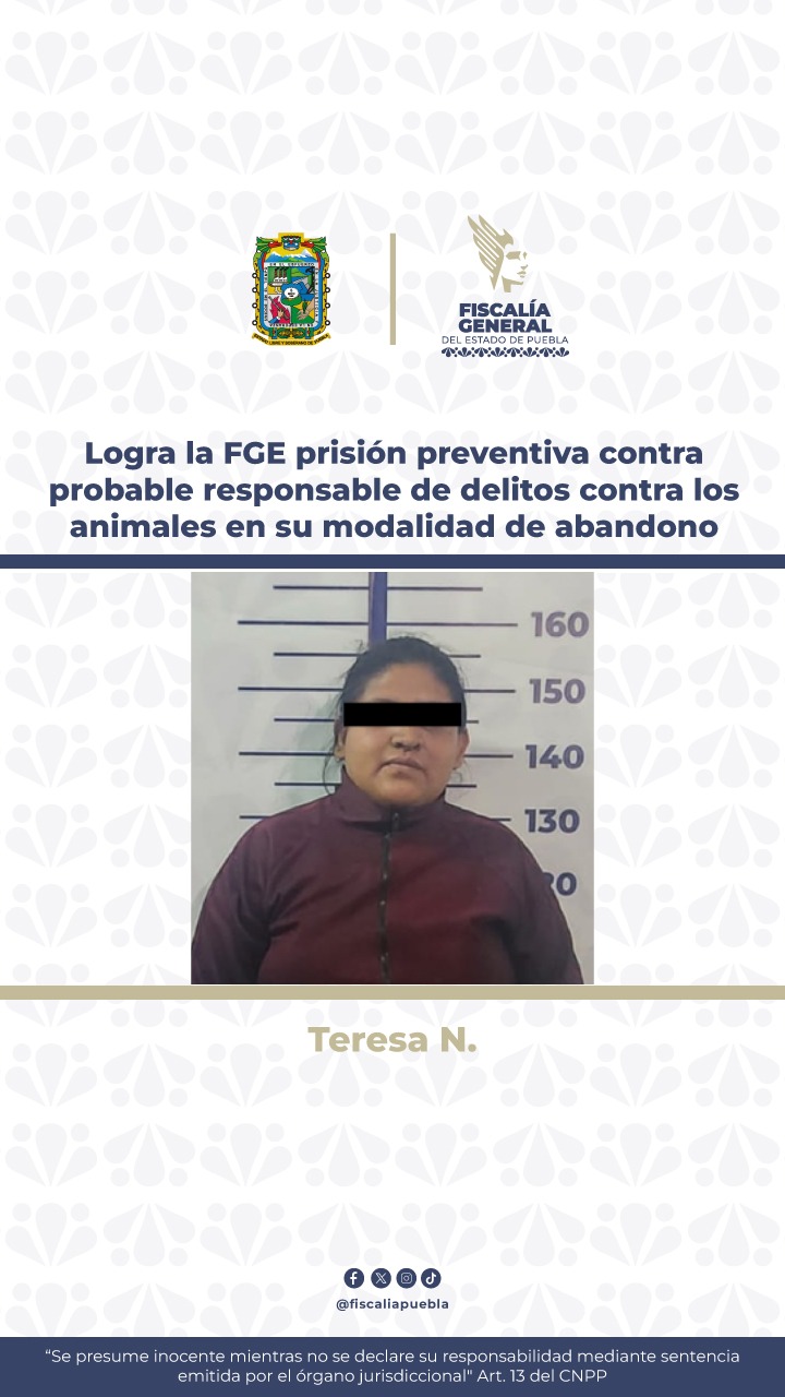 La Fiscalía General del Estado, mediante la exposición de argumentos, logró que la autoridad judicial impusiera la medida cautelar de prisión preventiva a Teresa N., como probable responsable de delitos contra los animales en su modalidad de abandono. El 24 de septiembre de 2024, Teresa N. llevó a su perrita mestiza de tres meses, llamada […]