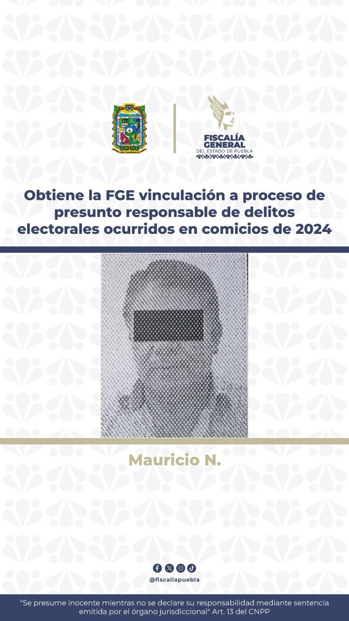 La Fiscalía General del Estado de Puebla informa que derivado de los actos de investigación realizados, se obtuvo la vinculación a proceso de Mauricio N., señalado como probable autor del delito de destrucción de documentación y material electoral. Se sabe que la madrugada del 3 de junio del 2024, el hoy imputado arribó junto con […]