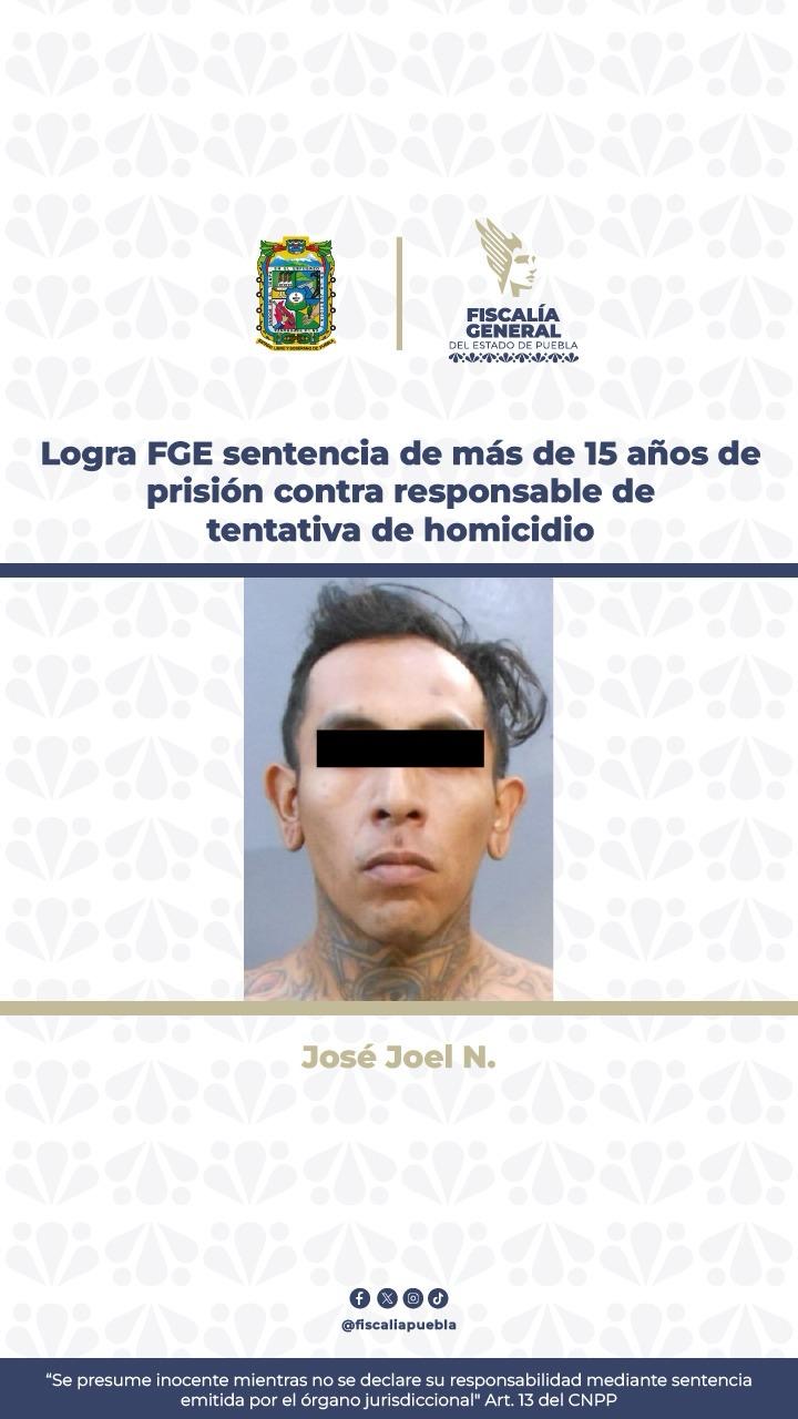 La Fiscalía General del Estado de Puebla obtuvo una sentencia de 15 años, 10 meses de prisión en contra de José Joel N., declarado penalmente responsable del delito de homicidio calificado en grado de tentativa, en agravio de dos personas en la ciudad de Puebla. De acuerdo con los hechos acreditados por el Agente del […]