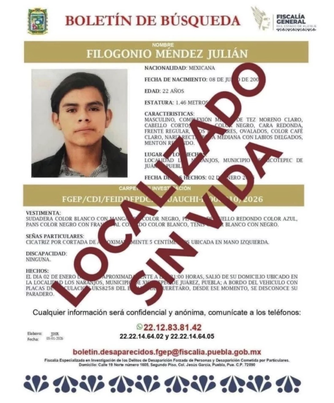Un joven de 22 años de edad, quien había sido reportado como desaparecido desde el pasado 2 de enero en el municipio de Xicotepec, fue localizado sin vida en el fondo de un barranco en Huauchinango, en la Sierra Norte de Puebla. De acuerdo con los primeros reportes, el hallazgo fue realizado por habitantes de […]