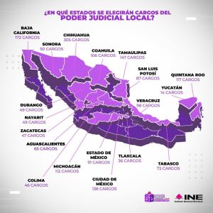 El Instituto Nacional Electoral (INE) confirmó que en 19 entidades federativas habrá elecciones locales extraordinarias para renovar cargos del Poder Judicial el próximo 1 de junio de 2025.
