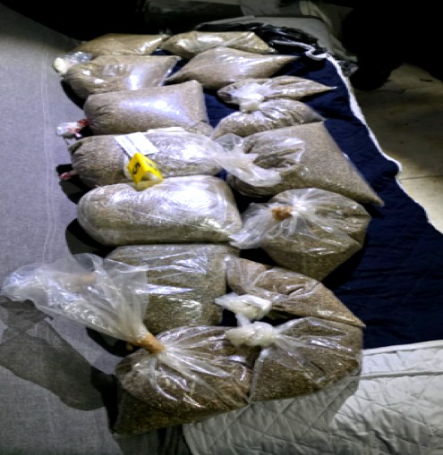 Mediante coordinación interinstitucional, fueron asegurados 65 kilogramos de marihuana