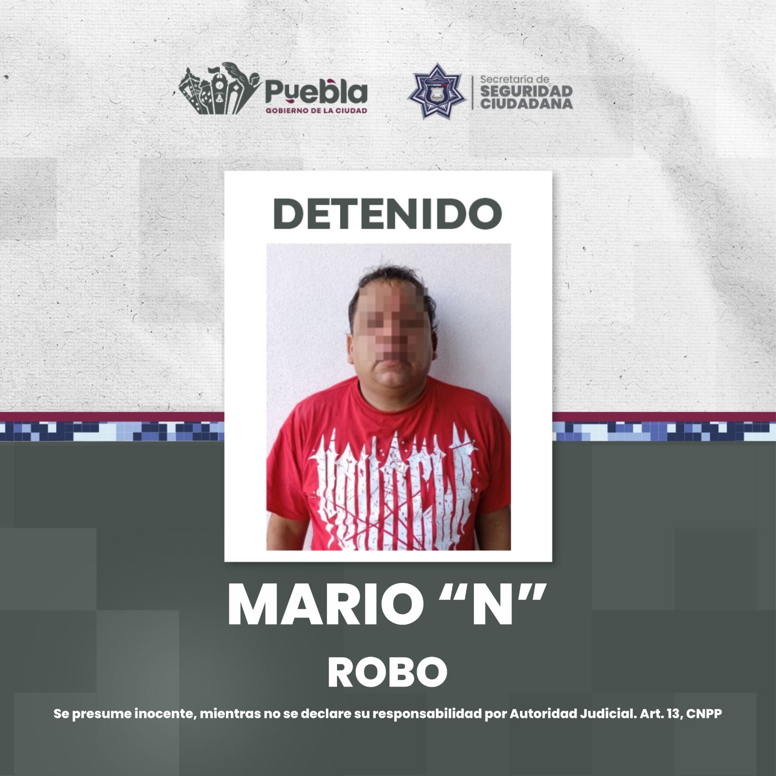 Durante el despliegue territorial, implementado en calles de la colonia San José Xilotzingo los uniformados detuvieron a Mario de 50 años de edad.