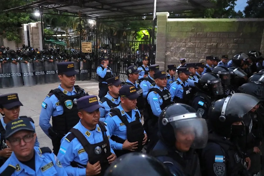La Policía de Honduras usa cañones de agua para dispersar una protesta de militantes del oficialismo