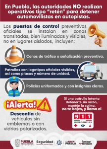 Los puestos de control preventivos oficiales, implementados por la Policía Estatal en coordinación con instituciones municipales y federales, se instalan únicamente en zonas transitadas