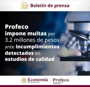 Profeco impone multas por 3.2 millones de pesos ante incumplimientos detectados en estudios de calidad