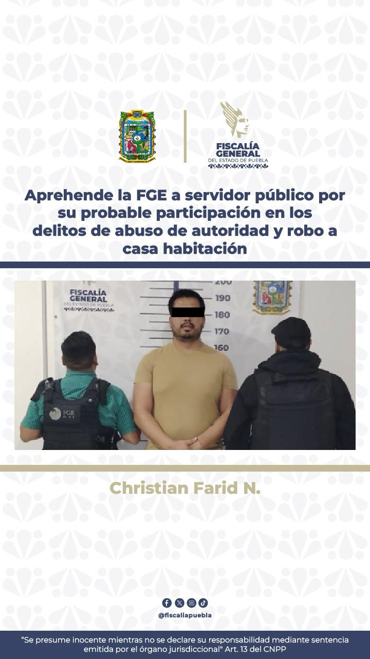 Aprehende la FGE a servidor público por su probable participación en los delitos de abuso de autoridad y robo a casa habitación