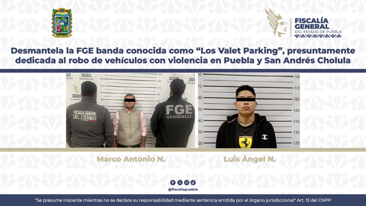 La Fiscalía General del Estado de Puebla logró desmantelar a la banda delictiva conocida como “Los Valet Parking”, presuntamente dedicada al robo de vehículos con violencia en los municipios de Puebla y San Andrés Cholula. A través de labores de inteligencia, campo y gabinete, se logró la detención de sus presuntos integrantes, Marco Antonio N. […]