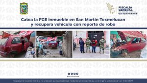 La Fiscalía General del Estado informa que como resultado de un cateo realizado en el municipio de San Martín Texmelucan, en coordinación con la Secretaría de la Defensa Nacional y elementos de la Policía Municipal, se logró recuperar un vehículo que contaba con reporte de robo. El pasado 8 de julio, se denunció el robo […]