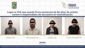 Logra la FGE que quede firme sentencia de 50 años de prisión contra 4 responsables de secuestro en Atzitzihuacán