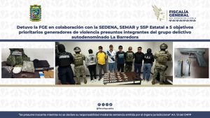 Detuvo la FGE en colaboración con la SEDENA, SEMAR y SSP Estatal a 5 objetivos prioritarios generadores de violencia presuntos integrantes del grupo delictivo autodenominado La Barredora