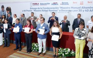 El Gobernador Alejandro Armenta encabezó la entrega de la Condecoración "Maestro Manuel Altamirano” por 30 años de servicio y el premio "Maestro Rafael Ramírez", por 40 años en la docencia.